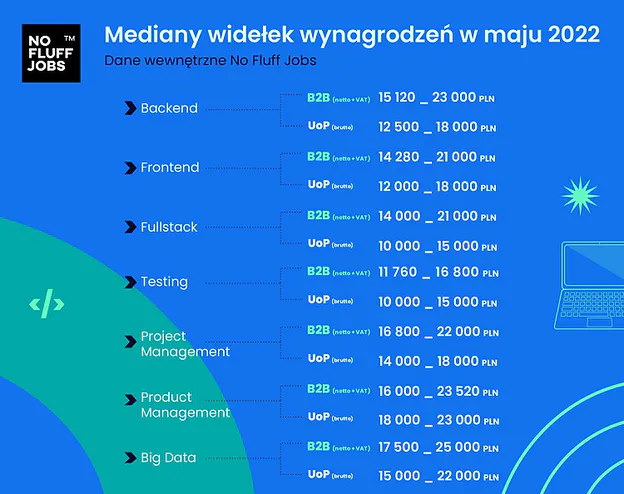 По данным опроса в 2022 году зарплаты в ИТ в Польше распределялись так: