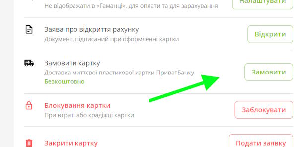 - в настройках (крайняя верхняя кнопка справа) выбрать "Заказать карту/Замовити картку", а затем "Международная/Міжнародна" (смотри картинки ниже)
